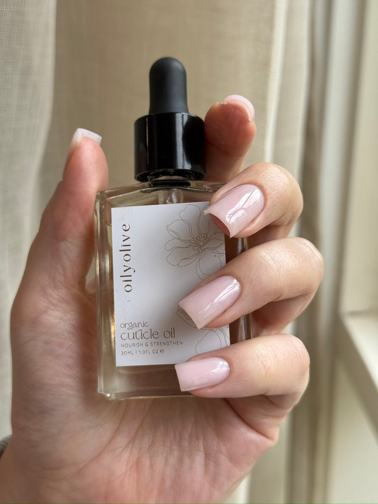 Tap the before and after buttons to see the luxurious difference our organic cuticle oil makes